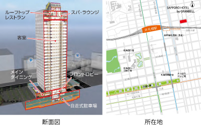 当ホテルは、大きな窓から札幌の景色を眺望できる25階の露天風呂付きスパ&サウナや、高さ100mからの夜景が魅力的なルーフトップレストランも併設予定です。北海道の玄関口である札幌駅前ホテルにふさわしい、心身ともにリラックスできる心地良いひとときをご提供します。