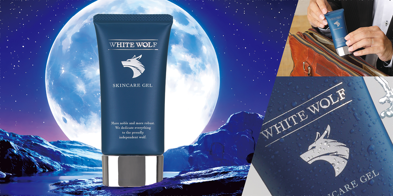 「ホワイトウルフ薬用スキンケアジェル」は、若々しく、自信に満ちた毎日を送りたいミドル・シニア層の男性に向けて開発されたオールインワンタイプのジェルです。有効成分として「ナイアシンアミド」「トラネキサム酸」「パンテノール(D-パントテニルアルコール)」を配合。医薬部外品として、シミ予防 *1、シワ改善、肌荒れ予防に加え、ハリ不足や乾燥対策まで、1本で多角的にサポートします。余分なテカリ、ベタつきを嫌う男性の肌にもフィット。様々な肌タイプの方にご使用いただけます。