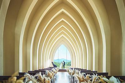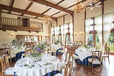 「ルグラン軽井沢ホテル&リゾート ウエディング」は、南軽井沢の雄大な空と森に抱かれた自然のなかで過ごすリゾートでの滞在型ウエディングをコンセプトに2018年の7月にグランドオープン。7万坪の広大な敷地内には、教会や邸宅風のパーティ会場のほか、ホテルやヴィラ、温泉棟が点在します。