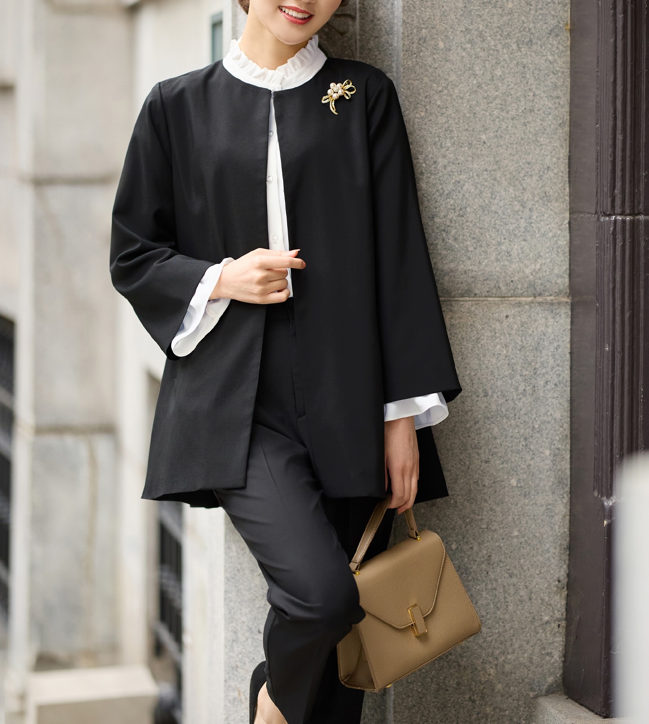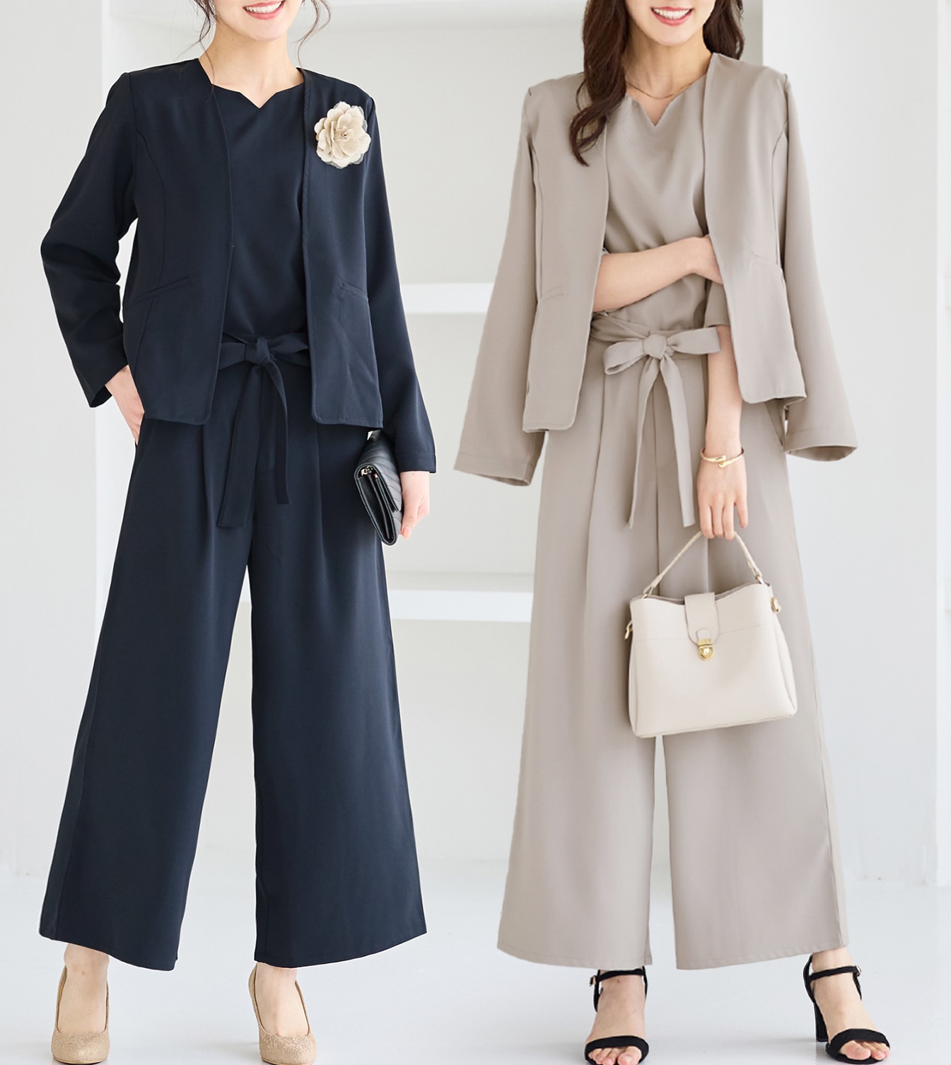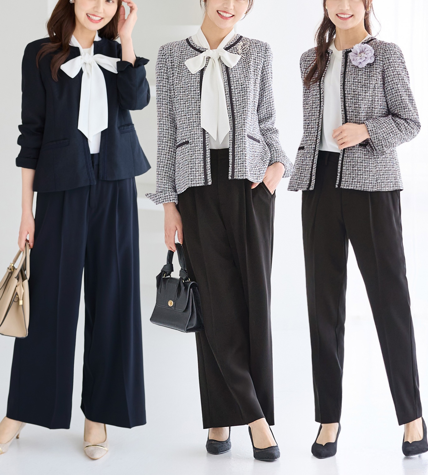 本日発売の4商品は全て上下セットのため、ハレの日のコーディネートに迷うことなく、きちんとした装いを完成させることができます。上品な印象を演出するデザインでありながら、長時間のセレモニーでも快適に過ごせる素材を採用しました。さらに、ご家庭で手軽に洗うことができる実用性も兼ね備えています。