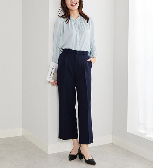 も、テーパードパンツやワイドパンツといったきちんと感のあるボトムスと