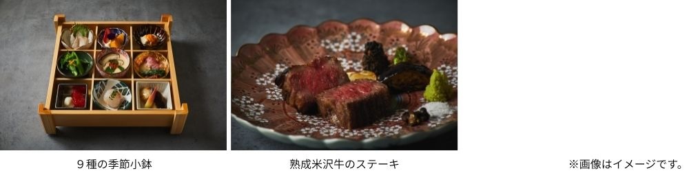 ・熟成ステーキのショートコース(9種の季節小鉢、米沢牛のユッケ、熟成米沢牛のステーキ)
