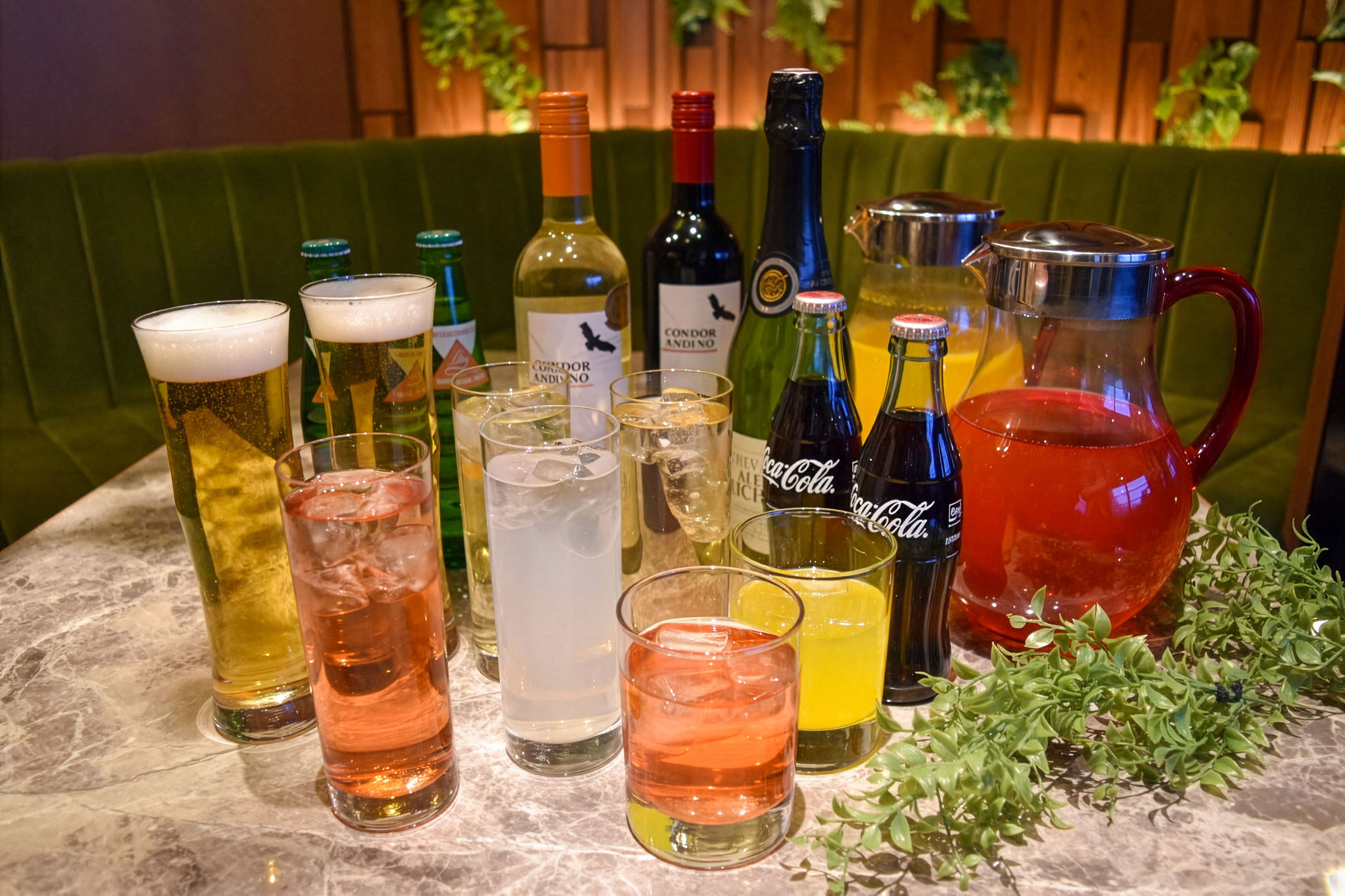 生ビール、ハイボール、レモンサワー、ワイン(赤・白・スパークリング)、
